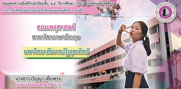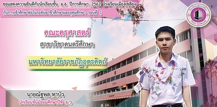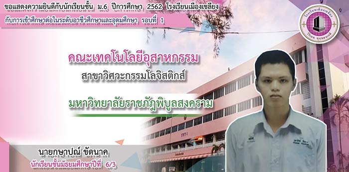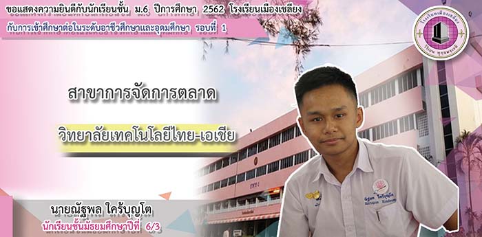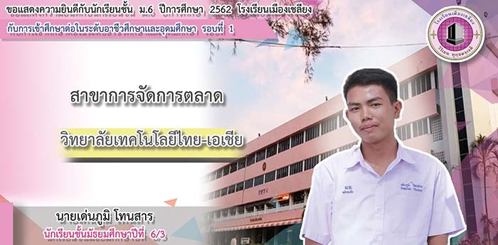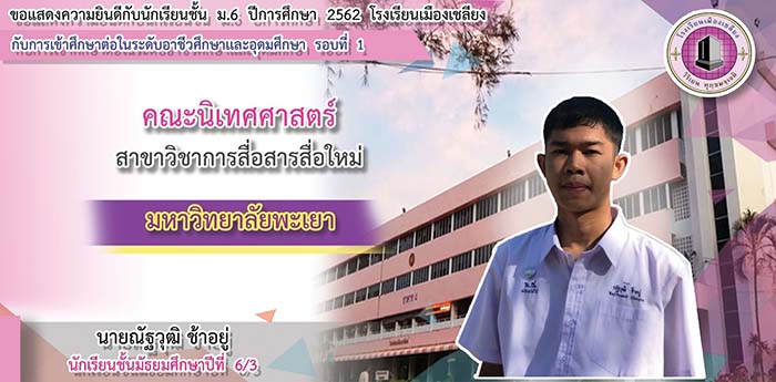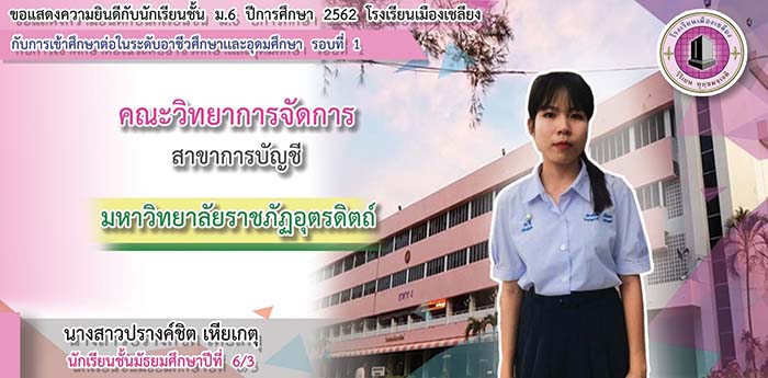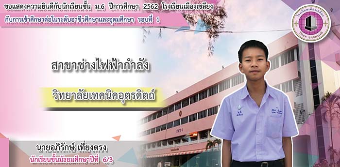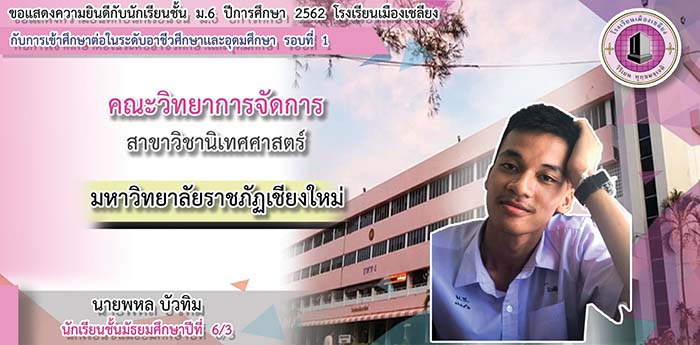 ขอแสดงความยินดีกับนักเรียนชั้น ม.6/3 ปีการศึกษา 2562 กับการเข้าศึกษาต่อในระดับอาชีวศึกษาและอุดมศึกษา